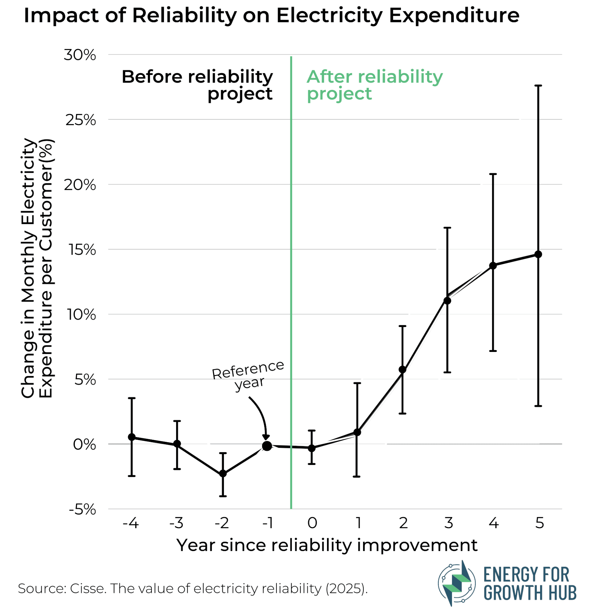 A new study using over 125 million electricity bills from 2 million customers allowed Dr. Cisse to attribute increases in electricity demand, appliance ownership, and willingness to pay to SENELEC’s reliability enhancements. Instead of using stated preference-based surveys that often lead to biased demand estimates, this study reveals the actual price that Senegalese customers place on reliability through their behavior.