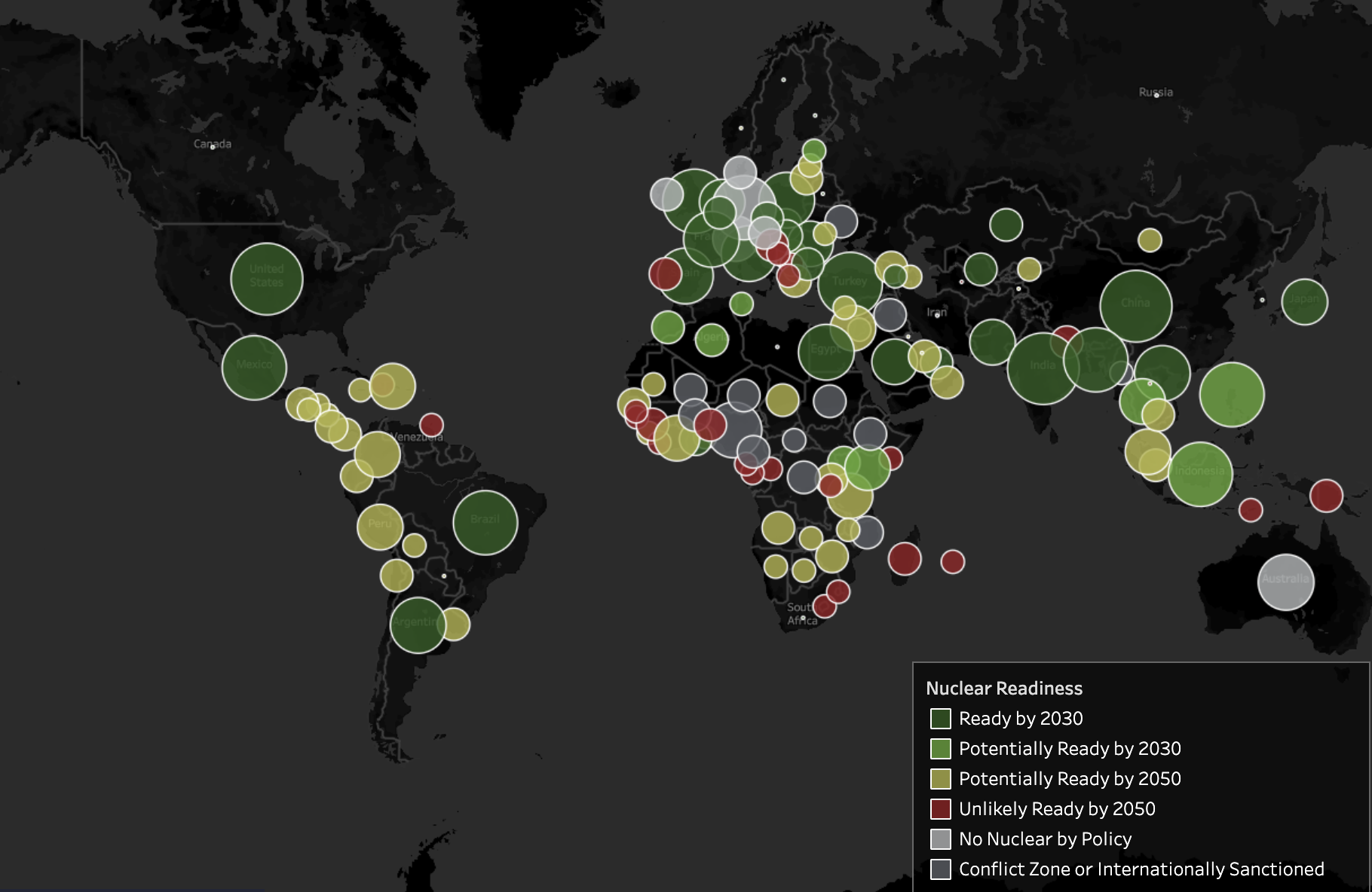 We start with the data. We map the global market for nuclear by estimating future energy demand and scoring all countries on their nuclear readiness. This work provides evidence to make our case for why nuclear financing will be needed in emerging markets. Then we provide specific policy ideas how to